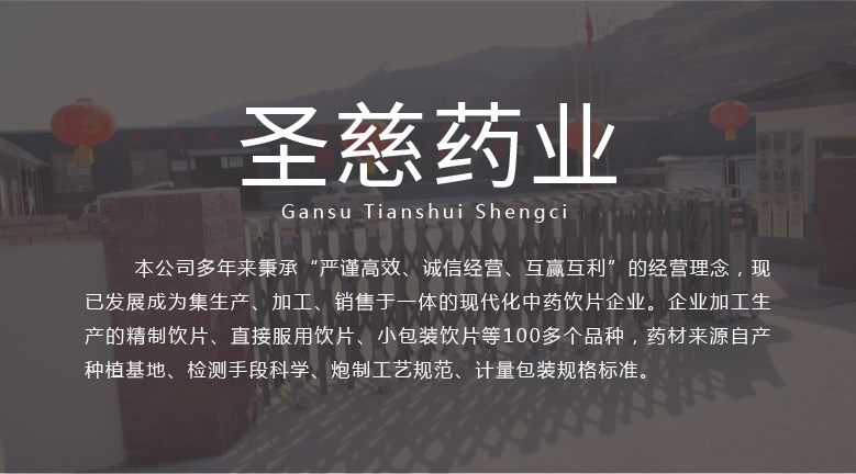 甘肅天水圣慈藥業(yè)有限公司成立于2016年11月8日,注冊(cè)資本500萬元,位于甘肅省天水市張川回族自治縣張川鎮(zhèn)中城南路,本公司多年秉承“嚴(yán)謹(jǐn)高效、誠(chéng)信經(jīng)營(yíng)、互贏互利”的經(jīng)營(yíng)理念,現(xiàn)已發(fā)展成為集生產(chǎn)、加工、銷售于一體的現(xiàn)代化中藥飲片企業(yè)。企業(yè)加工生產(chǎn)的精制飲片、直接服用飲片、小包裝飲片等100多個(gè)品種,藥材來源自產(chǎn)種植基地、檢測(cè)手段科學(xué)、炮制工藝規(guī)范、計(jì)量包裝規(guī)格標(biāo)準(zhǔn)。